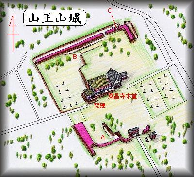 永禄年間の北条氏照書状に「山王山」「不動山」という2つの拠点の名前が出てくる。これは関宿城・古河城攻撃のための砦(寄せ場)として取り立てたものであると考えられるが、この2つの砦の場所がどこであったのか、はっきりとはしない。しかし、山王山については、五霞町山王山の東昌寺に城郭遺構が見られるので、この寺院を臨時に砦とするために、周囲に掻き揚げの土塁と堀をめぐらせていたのではないかと考えられる。つまり山王山の砦とはこの寺院のことと考えてよいであろう。不動山の砦についてもこの近くにあると思うのだが、現在の所、それがどこであるのかは分からない。