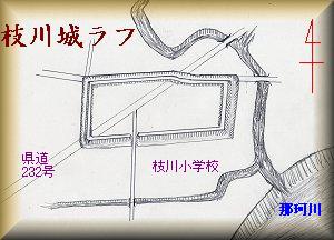 枝川城は、県道232号線の「枝川舟付」という交差点の南側一帯にあった平城である。舟付といった地名があるため、那珂川の水運を押さえる機能のあった城かとも思われる。南側には中川が湾曲した部分があり、また、城跡の至近距離には北東南に小川が流れている。かつては水利を要害としても用いた平地の居館であったと想像されるのであるが、周囲の宅地化が進んだために、遺構らしきものはすっかり見られなくなってしまっている。