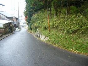 写真はこの坂の登り口辺りから、台地上を見たところで、この辺りの地形が城址らしき雰囲気を残している。