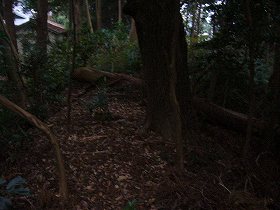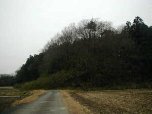 | <以前の記述)富士の上館は、ひたちなか東警察署の北側200mほどの比高10mほどの台地上にあった。ここには現在橿原神社がある。神社の脇は写真のような土手になっている。とはいうものの激しい雨のため、写真は暗くなんだか分からなくなってしまっている。城主等歴史も未詳。 | |