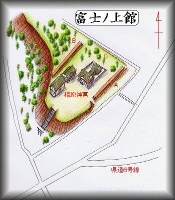 ひたちなか市富士ノ上の橿原神社が富士ノ上館の跡であるという。県道6号線からちょっと奥に入ったところにあるので車で行くと分かりにくいが、「東本町」というバス停の東側の信号のある交差点から北側に入っていけば、鳥居と石段のある所がすぐに見えてくると思う。