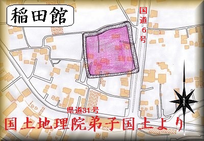 稲田館は、国道6号線と県道31号線が交差する所の北西200mほどの所にあった。