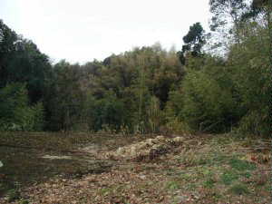 したがってここに入り込んでしまうと沈んでしまうので注意。この上が館跡ということなのだが、山林を少し歩いただけでは遺構は確認できなかった。