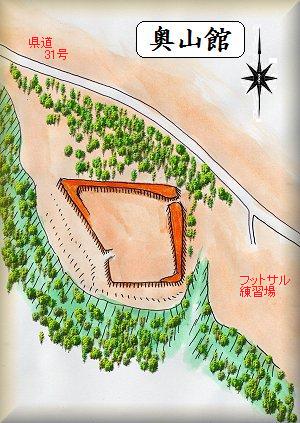 奥山館は北根霊園のすぐ南側にある。南側に突き出した比高15mほどの台地先端部を利用したものである。