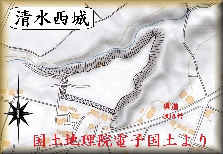 清水西城の城主等、歴史については未詳であるが、清水城の支城だったのではないだろうか。