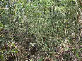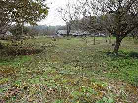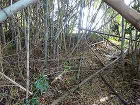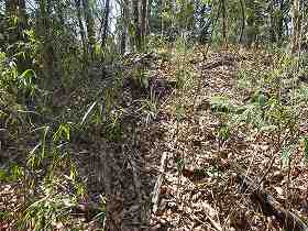 | 南側の水堀跡と思われる部分。 | 宅地の北側の竹ヤブの中には土塁らしきものが残っている。 |