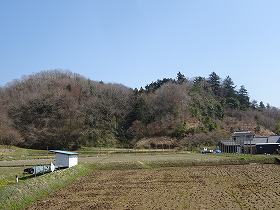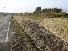 | Aの土塁の東側。まるで丸馬出と三日月堀に見える地形である。 | Aの土塁を西側から遠望したところ。 |