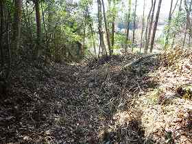 | 2との間の切通し通路。 | 北側尾根Aの直前にある堀切。 |