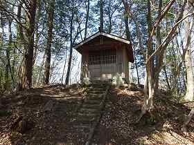 これは意外である。こんなところに神社が建立されているとは! 神社から南側に降りていく参道が一直線に付けられていたので、ここに来る参道を通れは、神社までは簡単に来られるのではないかと思う。ただし、こちらも参道の入口がどこであるのかは確認していない。ちなみに神社はこの地域にふさわしく、東金砂神社であった。