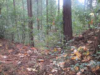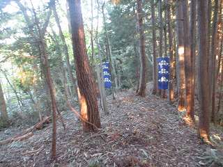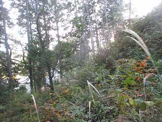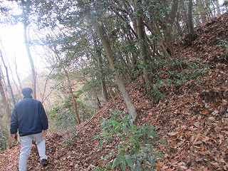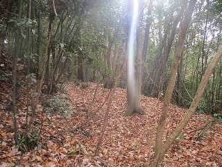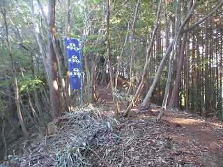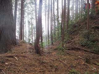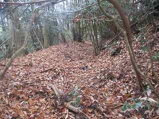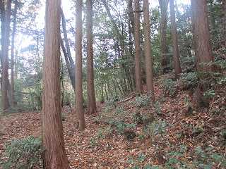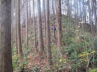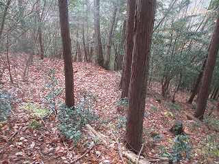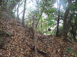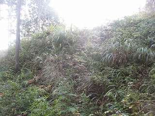 そして最上段の墓地からは山稜内部に入って行く。ここからは道はないが、ここまで来れば主郭部分までは比高20mほどしかないので、テキトーに登って行けば、城内に到達することは可能である。