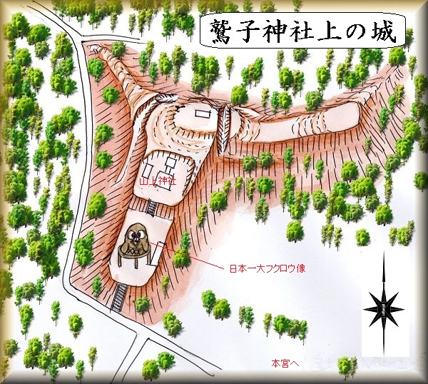 鷲子神社上の城の場所。