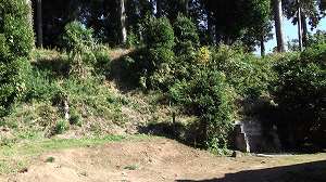 香取神社の脇には堀切跡のようなものが見られる。台地基部のネックに当たるので、入口の堀切があってもよさそうな場所なのではあるが、道路の西側のみであり、東側には続いていない。ということで、一見堀切に見える地形ではあるが、後世のものなのかもしれない。