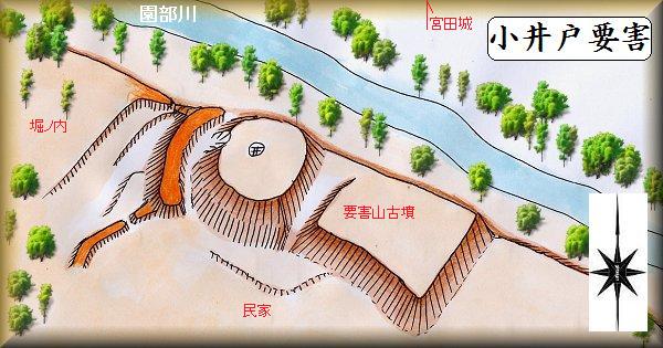 小井戸要害は、このような小規模な城郭である。下の以前の記述では「府中城の支城の1つ」というように述べているが、このような形態から想像するに、戦時に取り立てられた陣城のようなものであったと想定するのが現実的であると思われる。