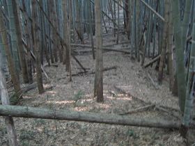 | 高野浜城1郭北側の二重になっている堀の間の土橋。 | 1郭北側堀の城塁。 |