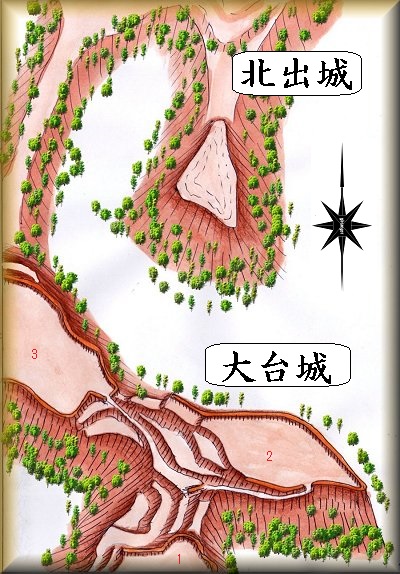 詳細な構造は不明だが、おおよその地形と、大台城との位置関係だけは理解できるであろう。