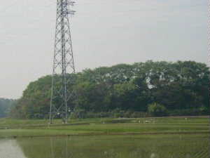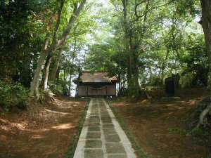 県道の東側には写真の神社がある。これが朝比奈氏に関係のあるものなのかどうか知らないが、特に土塁や堀などの遺構は見られない。新緑の季節だったので、緑がとてもきれいだ。鳥もさえずっている。