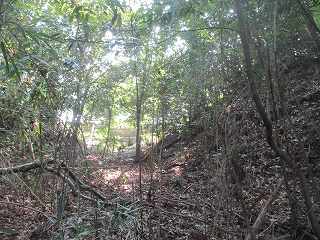 | 二重堀切の中央部分。 | 二重堀切の西側部分。 |