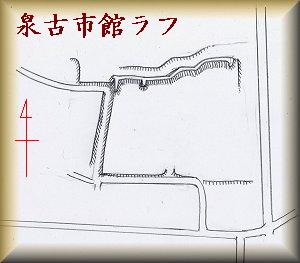 泉古市館は、JR岩間駅の南600mほどの所にあった。岩間駅東南300mほどの所にコンビにSPARがある。この80mほど東南に、南に入っていく道がある。この道を500mほど南下すると、右手に林があり、周囲をフェンスで囲んでいるのが目にはいってくる。この中に館があったようである。しかし、現地の方に伺っても「知らない」としか言われなかった。