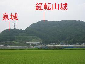 泉城の背後にそびえるのが比高200mの鐘転(かねころばし)山である。ここには泉城の上の城といわれるものが存在しているが、形態的にも地理的にも、泉城とは別の城郭と見た方がよいのではないかと思われる。したがって、ここでは鐘転山城として紹介しておく。
