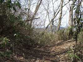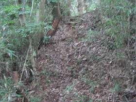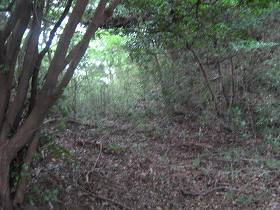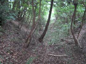 | 堀切3。城外側の方が高くなっているのが不自然である。 | 堀切2。小規模だが、ちゃんと堀切である。端の方には竪堀もある。 |