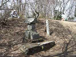 難台山城は、標高553mの険しい山の上にある。下から登る旧道もあるようなのだが、南側の団子石峠か北の道祖神峠まで車で上がれるので、このどちらかから取り付くのがよいであろう。今回私たちは、団子石峠から登った。団子石峠に来るまでの道も分かりにくいのであるが、国道355号線の「仲町十字路」という信号(岩間駅の北西400mほど)を西に曲がって、どこまでも道なりに行くと峠までは上がれる。しかし、途中道が分かれていて分かりにくいところもあるので、地元の人に確認したほうがよいと思う。