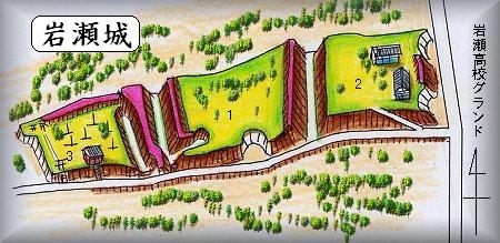 岩瀬城は、県立岩瀬高校のすぐ西側にある比高6mほどの台地上にあった。東西に細長い小さな台地であるが、現在ここに3郭ほどが認められる。