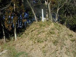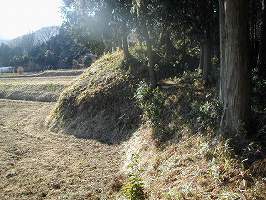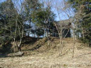 なお、この城は古い形式のものなのか、土塁も空堀も小規模である。堀はほとんど埋まっている感じだ。また、この山の支尾根は四方に延びており、この主要部以外にも、遺構があちこちにある可能性もある。