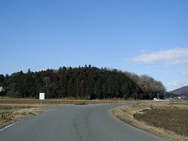 松田城は、土浦日大高校の東南400mの所にある。水田中に西側から突き出した比高2mほどの微高地上である。城内は畑地や山林となっているが、先端付近の遺構はよく残っている。幅10mほどの空堀や土橋、土塁の上には何かの祠がある。