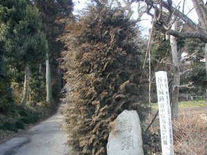 | (以前の記述)磯部館は桜川公園の北東600m、現在磯部稲村神社の境内となっている。神社の入口辺りには土塁が残っているが、これは枡形を形成していた名残のように見える。また東側から北側にかけて、空堀がよく残っている。深さ4m、幅7mほどのもので、この規模の館のものとしては、実に立派である。しかし、南側と西側ではすでに埋められてしまったのか、もはや見られなくなってしまっている。南側は神社の入口の土塁の前まで堀があったのであろう。現在も少しこの辺りが窪んでいるのが分かる。神社の建設に伴って埋められてしまったものと見える。 郭の規模は40m×60mほどである。 「桜川公園」は謡曲「桜川」のモデルになった桜のある公園だという。この話の元になった「桜児物語」という本は、永享年間、磯部神社の神主磯部祐行が関東公方足利持氏に献上したものを、足利義政が世阿弥に命じて謡曲にしたものだという。ということは永享年間からこの館は磯部神社神主の居館であったということになる。(この内容は現地案内板に基づいているものだが、「関東公方足利持氏」という表現や、永享10年には世阿弥は佐渡に配流されており、謡曲を足利義政に命じられて作るという伝承はおかしいのではないかといった指摘をひづめさんからいただいた。神社に伝わる由緒書では、このようになっているらしいが、私なりに解釈してみると・・・・・・・・関東公方はもともとは関東管領として、足利尊氏に配置されたものであるので、その辺りの伝承が混同して、一部書籍には関東管領足利持氏といった表現が用いられてしまったのではないかと思う。したがって当時の通称としては、関東公方足利持氏とすべきであろう。また、世阿弥は6代将軍足利義教からは疎まれ、永享6年には佐渡に流されている。足利将軍の命で謡曲を作るとしたら、これは義満か義持のことで、年代的にももっと早い時期のことであるのかもしれない。関東公方が関東管領であったのもかなり古い時代の話である。) |