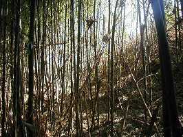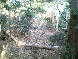 | 城塁とその下の道。この道は犬走りのようなものであったかもしれない。 | 横堀・・・なのだが、写真にはうまく映らない・・・・。外側の土塁は高さ1m未満であり、小規模である。 |