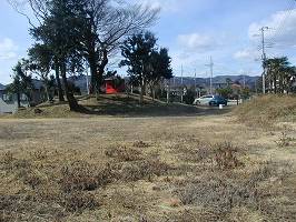 | 東側の土塁。高さは1mほどである。 | 土塁の北東端辺りから、稲荷神社のある櫓台状の部分を見た所。 |