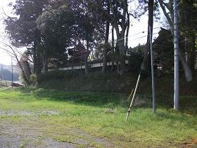 しかし、寺院そのものがある部分はちょっとした高台にある平場であり、居館を営むにはふさわしい場所である。寺院の縁部分には土塀がめぐらされているので、下から見ると、いかにも城館のような雰囲気になって見えるのである。城館が存在したとすれば、山上ではなく、この寺院のある場所そのものだった可能性の方が高いように感じられた。