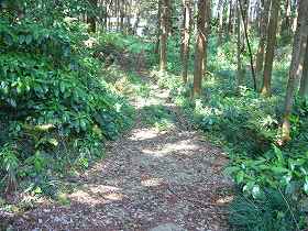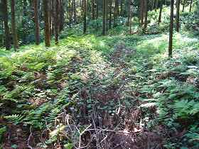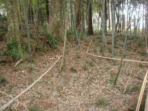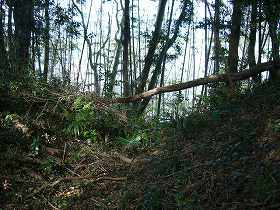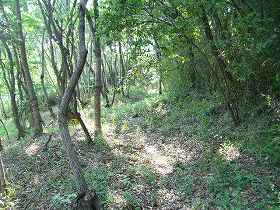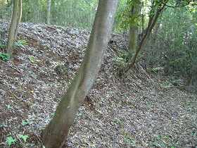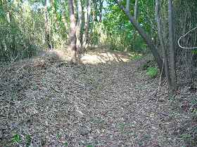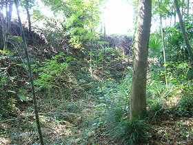 | Aの横堀。深さ5mほどである。 | 南側下の腰曲輪。 |