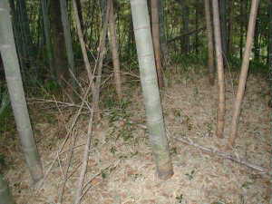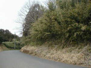 竹林の中なので写真を撮ってもさっぱり分かりにくいが、高さ1mほどの土塁がこの道と並行するようにして60mほど続いている。