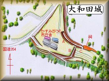 さて、国道354号線によって切り取られた東側の台地先端部が城址ということになる。主郭と思われる部分は市庁舎の建設によってだいぶ改変されているようであり、実際にはもっと複雑に区画されていた可能性もあるが、なんともいえない。