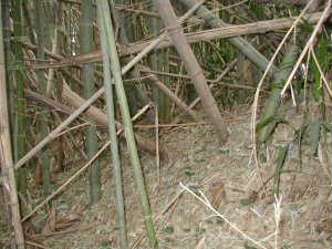 この道の入り口にはNTTの施設もある。この道を500mほど進んでいくと、右手に竹林が見えるが、その中に入ってみると、確かに土塁は存在していた。