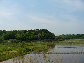 写真の右手がそれである。大和田城の下の道を東に向かい、台地を上がった所の北側一帯である。