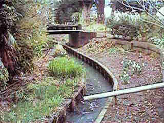 また、東側の、写真の小川の辺りは現在でも水堀の名残を感じさせる。この小川には生活排水が流されているらしく、かなり汚れているが、かつては澄んだ美しい小川だったのであろう。