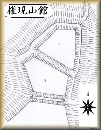 (以前の記述)権現山館は、JR常磐線の「南中郷駅」の西700mほどの所にあったという。比高20mほどの切り立った台地で、台地の上には一軒の民家と畑がある。この台地上に上がる道は細いくねくねした道で、この一軒の家に行くためだけの道らしいが、台地上にただ一軒だけの家とは寂しい限りだ。