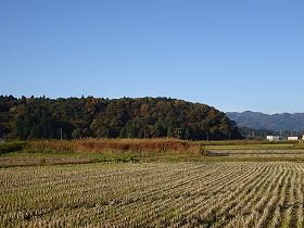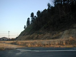 中郷町下桜井の方から常磐自動車道の高架下へ向かっていく途中、道路脇まで迫った比高10mほどの丘が見える。「水門前」というバス停のあるところである。先端部がゴミ捨て場になっていて、かなり景観が悪くなってしまっているのが残念。「お共山」と呼ばれる山である。(これは以前の記述で、現在は先端が削られて整地されていた。何かの施設が建設されるのであろうか。(04.12.11)