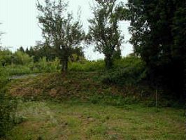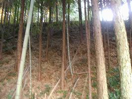 | 東側の道から上がっていくとすぐに腰曲輪に到達する。左手に見えているのは3郭の城塁である。 | 2郭と3郭との間の段差。かつてここには堀があったのではないだろうか。 |
