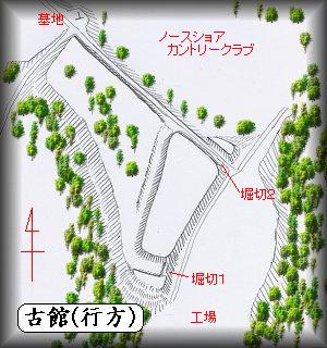 郭の中心は、堀切1と2によって区画された部分で、単純で小規模な構造からすると、山田城の台地の東側端を監視するための砦、あるいは番所として築かれたものではないかという印象を受ける。「古館」という名称からすると、古い時代の居館があったところ、というようにも解釈できるのであるが、となると、郭部分の下の、わりと広大な平坦地辺りに館跡を求めるのがよいように思われる。ただ、この下の郭や堀切2の北側一帯は、ゴルフ場の建設に伴ってかなり改変されてしまっている可能性もある。