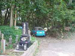 | ゴルフ場に向かって細い道を上がっていくと、やがてこの墓地の所に出る。ここから東南(車を突っ込んでいる方)に進んでいった所が古館である。 | 北側の堀切1。深さ3mほどだが、幅は10mほどもある。 |