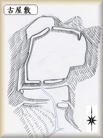 『古屋敷遺跡跡発掘調査報告書』の測量図を基にしたラフスケッチを参考までに掲げておく。
