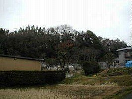 | (以前の記述)古屋台館は県道185号線の「吉川稲荷前」というバス停の西側にそびえている比高25mほどの台地上にあった。「古屋」は茨城ではおなじみの城郭関連地名である。東側は切り立った急斜面となっている。北西側が台地続きである。 この台地の北側から西に入っていく道の途中に、上に登る道が見える。これが古い登城道かもしれないが、もう少し先のゲートボール場やお堂の辺りからは車で上がっていくことができる。 台地上は宅地造成のための工事が行われたようで、かなり改変されてしまったようだ。しかしバブルはじけて土地は売れなくなったらしい。台地上には1軒の家があるのみである。さびしい限りだ。台地先端部にわずかに取り残されたかのように、写真の土塁が残っている。高さ2mほどで、長さ10m分くらいしかない。土塁の下に北浦町の教育委員会が立てた「古屋台館跡」の標柱がある。この郭は50m×100mほどの広さがある。 城主等は明らかではないが、おそらくは山田城の山田氏の支城ではないかと推測される。 |