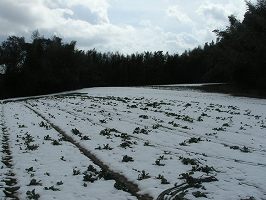 | 南側の国道から見た小貫城。下の水田面からの比高は20m弱である。 | 4の部分辺りから1郭跡方向を見たところ。耕地整理によってかなり破壊されてしまっている。 |