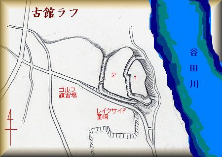 中城と違って、こちらは宅地にはなっていないので、遠慮せずに内部を歩き回ることができるのだが、しかしこちらはなんとも藪がひどいことといったら・・・・。地元の人に「子供の頃は古舘でよく遊んだものだが、今は荒れていてとても入れないんじゃないか」と言われたた時も、「普通の人にはそうでも、ヤブレンジャーならどうってことないだろう」と多寡をくくっていたのだが、実際に訪れてみると、いやはやここの藪は並大抵ではない。ヤブレンジャーといえどもここを踏破するのはかなりきつい。従ってこの図も多分にイメージ的なものであるに過ぎないので注意していただきたい。