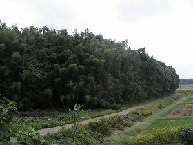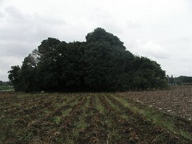 | 北側の土塁と横堀が埋められて切れている部分。 | 東側jに見えるガサ藪もかつての城塁の名残であるという。この近くには井戸の跡もあったらしい。 |