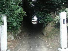 | 守徳院入口の辺りから中城のある台地を見たところ。比高10mほどである。 | 守徳院の入口。この寺院のある所も、城の一部のように思われる。 |