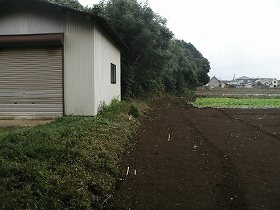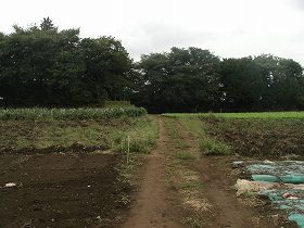 | 古屋敷の郭内。一面の畑地となっている。 | 東側の土塁跡。 |